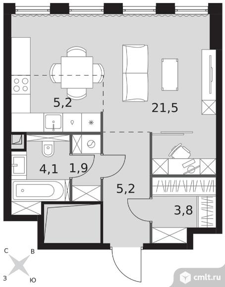 1-комнатная квартира 41,7 кв.м