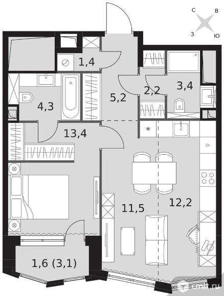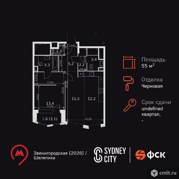 2-комнатная квартира 55,2 кв.м