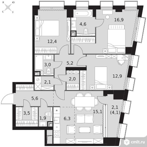 Перейти к актуальным объявлениям рубрики Квартиры. 4-комнатная квартира 93,6 кв.м