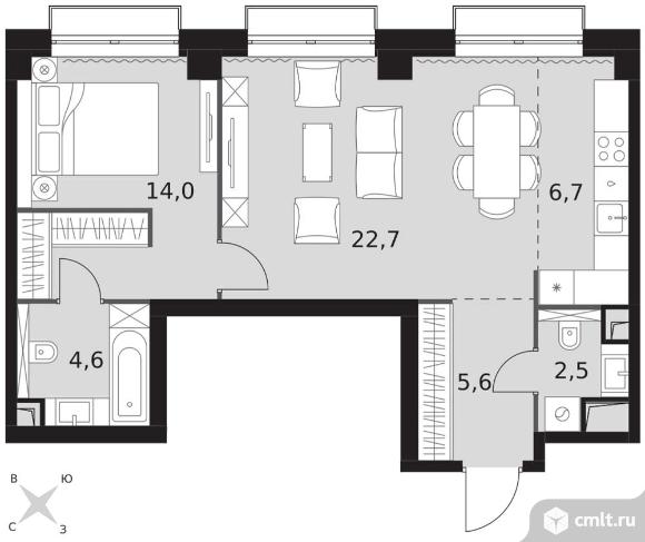 2-комнатная квартира 56,1 кв.м
