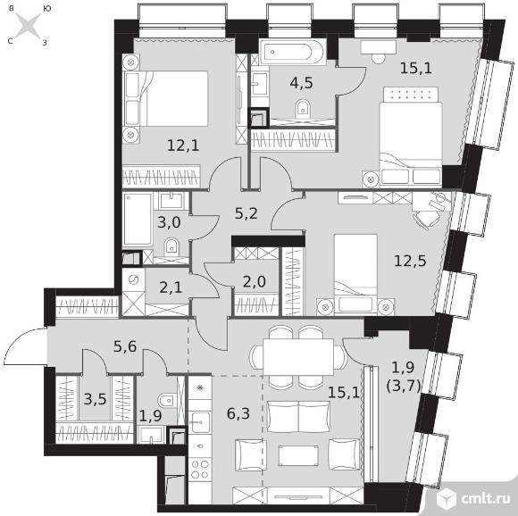 Перейти к актуальным объявлениям рубрики Квартиры. 4-комнатная квартира 90,8 кв.м
