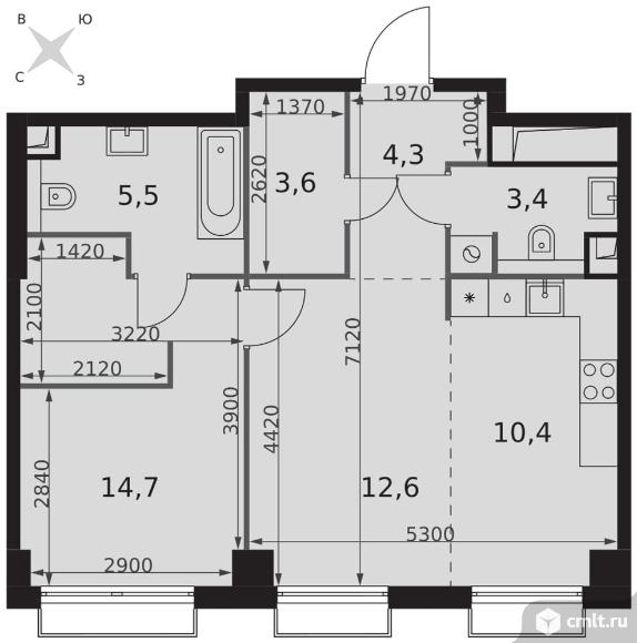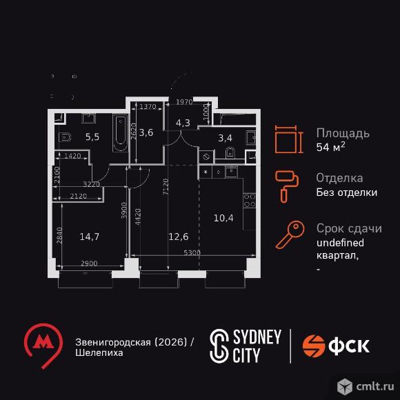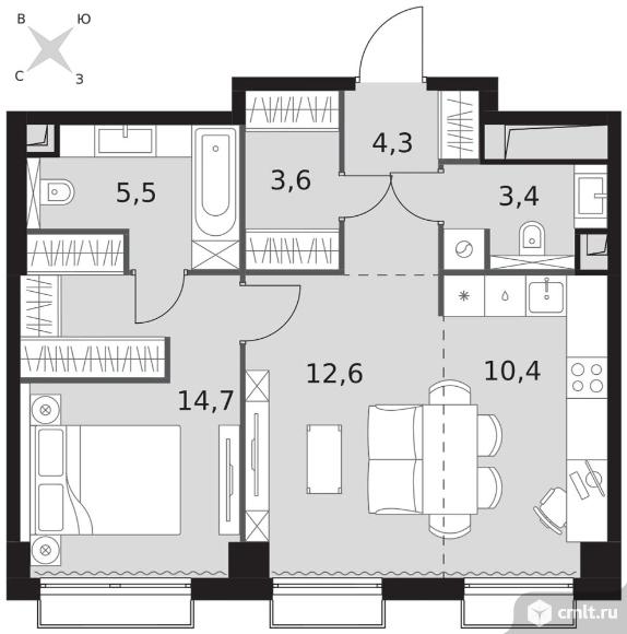 2-комнатная квартира 54,5 кв.м