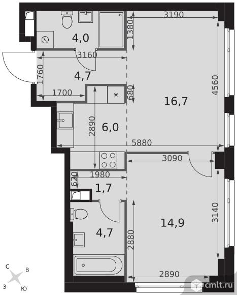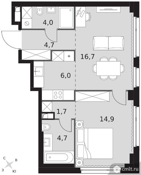 2-комнатная квартира 52,7 кв.м