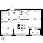 1-комнатная квартира 35,4 кв.м