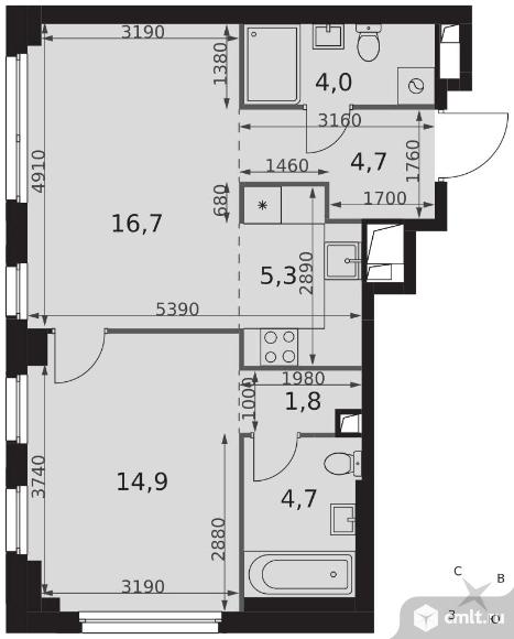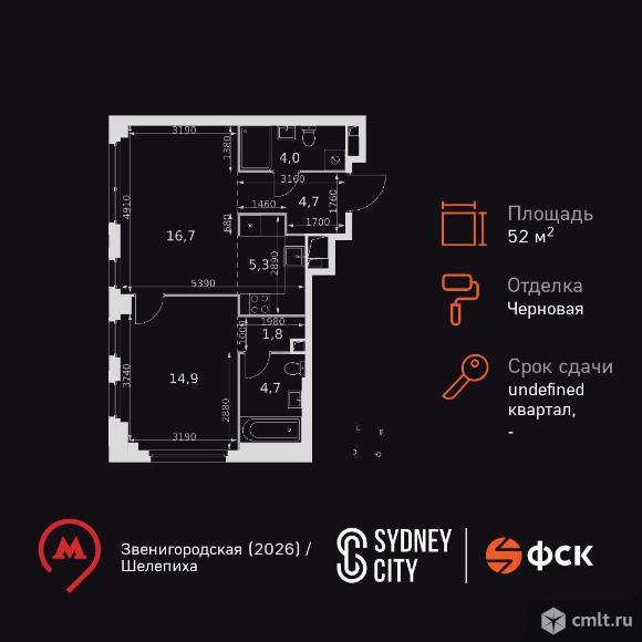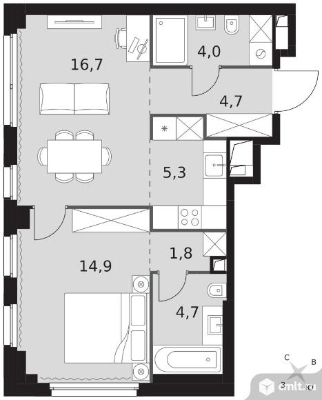 2-комнатная квартира 52,1 кв.м