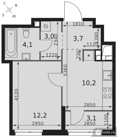 1-комнатная квартира 36,3 кв.м