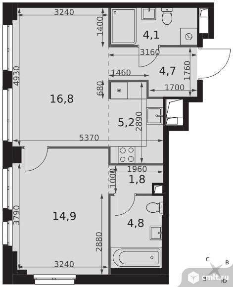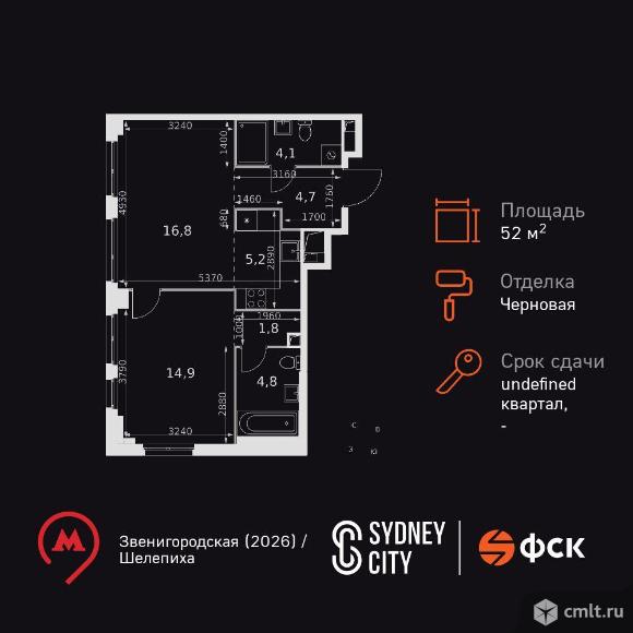 2-комнатная квартира 52,3 кв.м