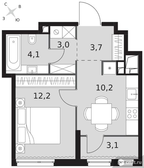 1-комнатная квартира 36,3 кв.м