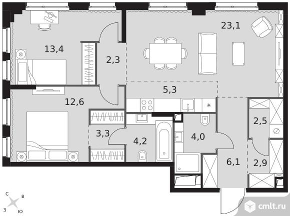 3-комнатная квартира 79,7 кв.м