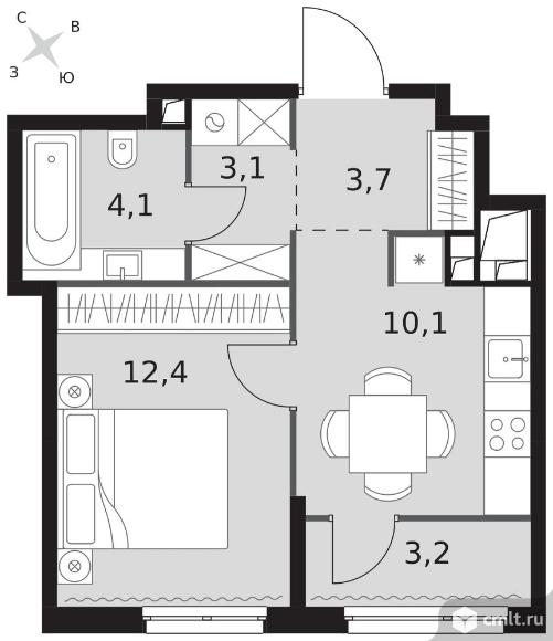 1-комнатная квартира 36,6 кв.м