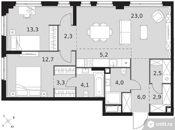 3-комнатная квартира 79,3 кв.м