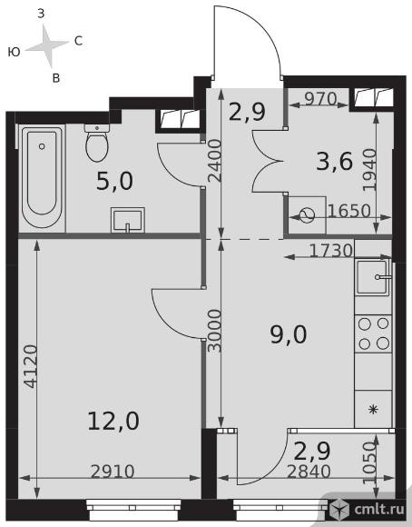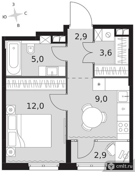 1-комнатная квартира 35,4 кв.м