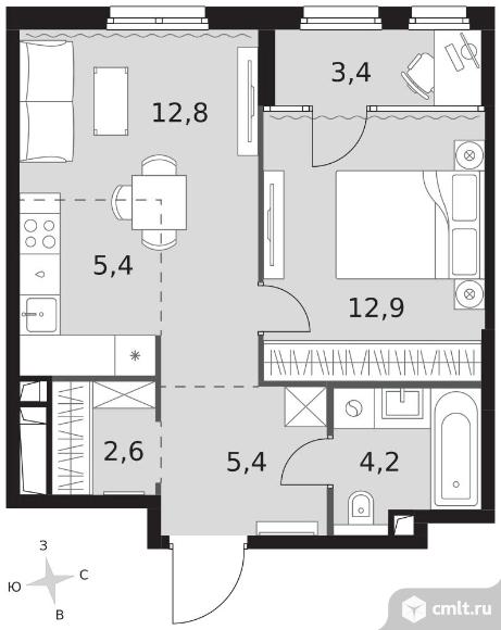 2-комнатная квартира 46,7 кв.м