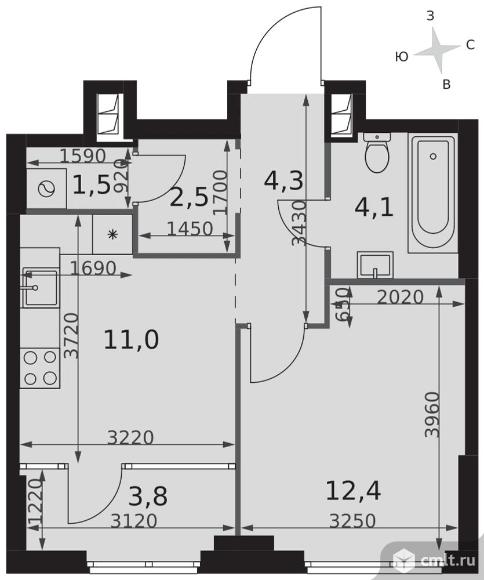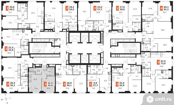 1-комнатная квартира 39,6 кв.м