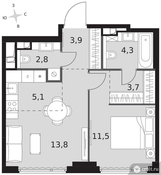 Перейти к актуальным объявлениям рубрики Квартиры. 2-комнатная квартира 45,1 кв.м