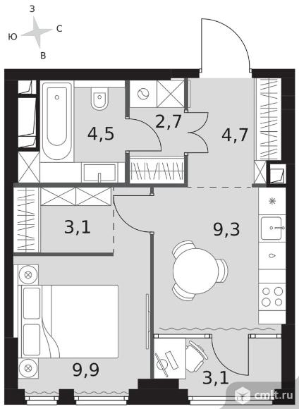 1-комнатная квартира 37,3 кв.м