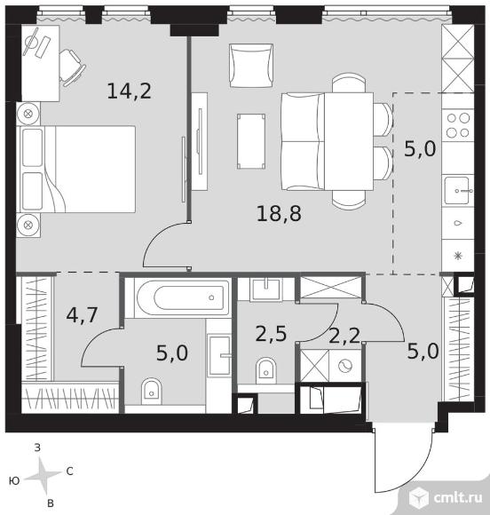 2-комнатная квартира 57,4 кв.м