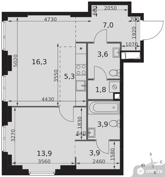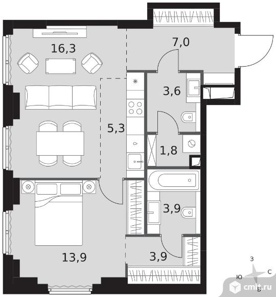 2-комнатная квартира 55,7 кв.м