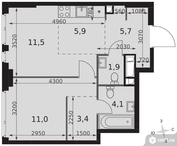 2-комнатная квартира 43,5 кв.м
