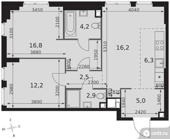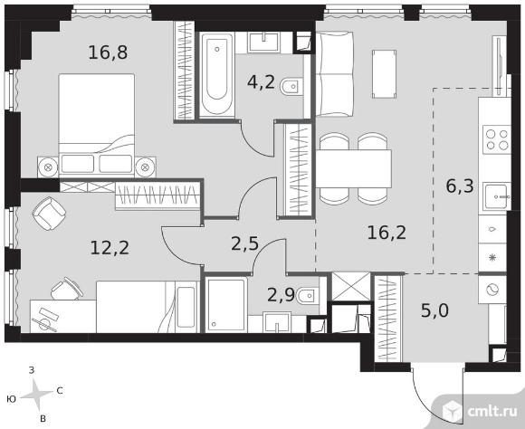 3-комнатная квартира 66,1 кв.м