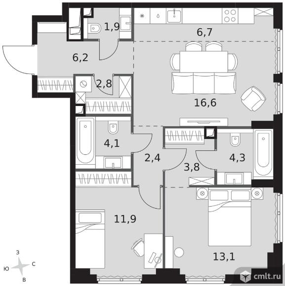 Перейти к актуальным объявлениям рубрики Квартиры. 3-комнатная квартира 73,8 кв.м