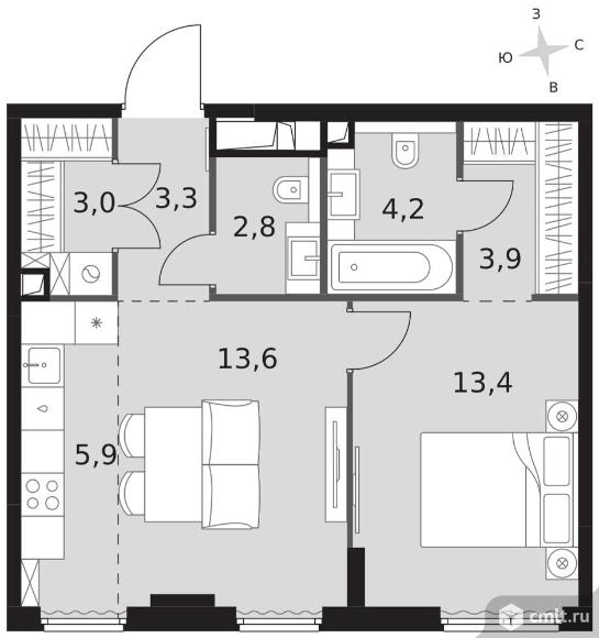 Перейти к актуальным объявлениям рубрики Квартиры. 2-комнатная квартира 50,1 кв.м