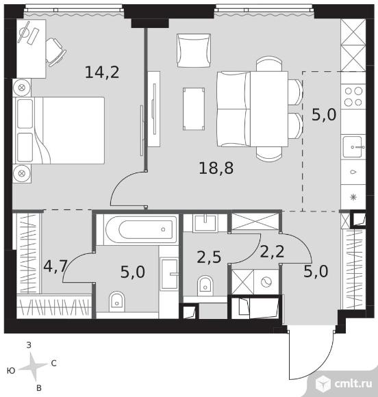 2-комнатная квартира 57,4 кв.м