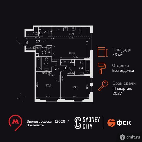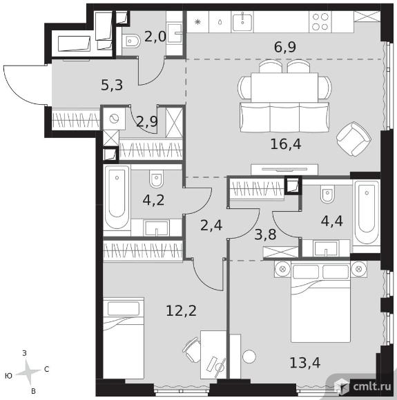 3-комнатная квартира 73,9 кв.м