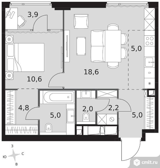 2-комнатная квартира 57,1 кв.м