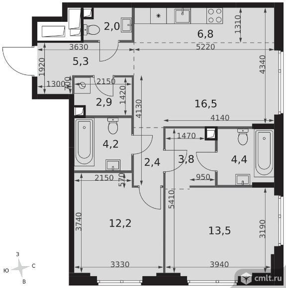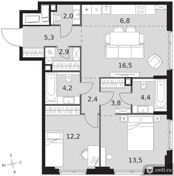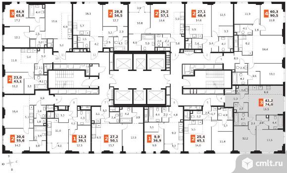 3-комнатная квартира 74 кв.м