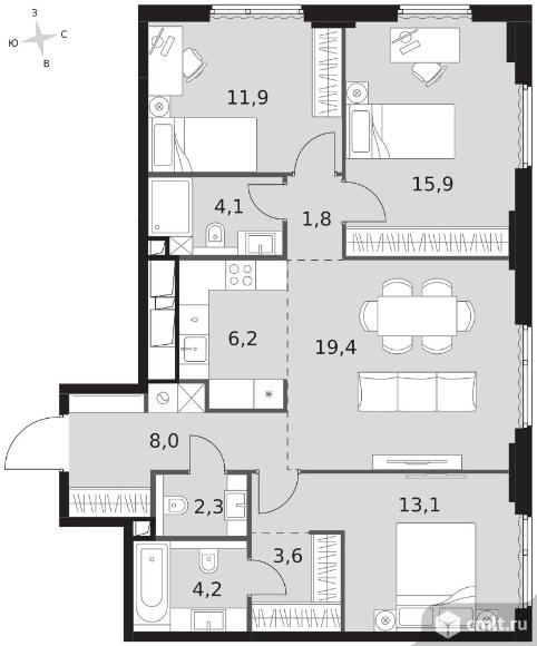 Перейти к актуальным объявлениям рубрики Квартиры. 4-комнатная квартира 90,5 кв.м