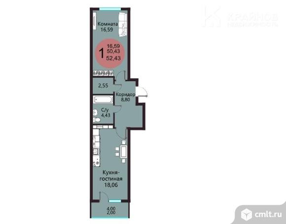 1-комнатная квартира 52,43 кв.м
