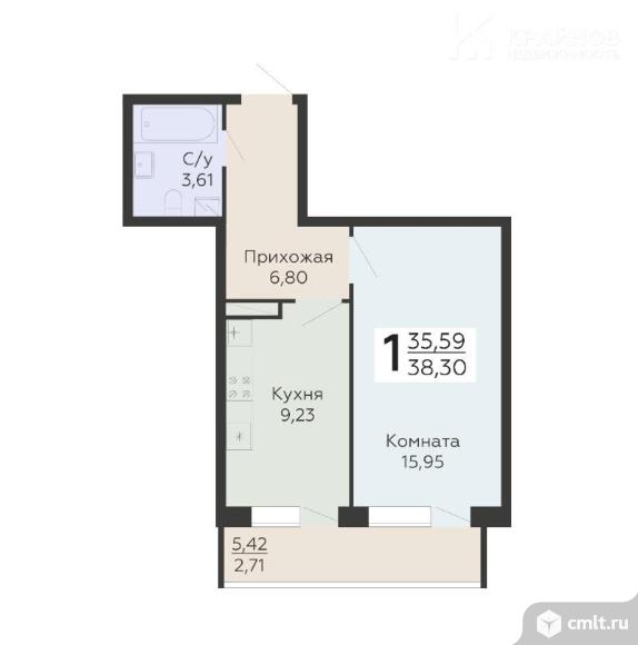 1-комнатная квартира 38,3 кв.м