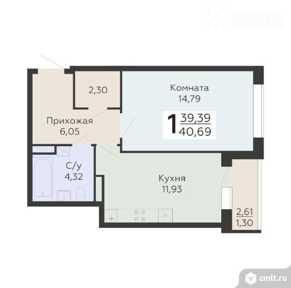 1-комнатная квартира 40,69 кв.м