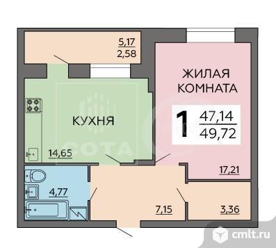 1-комнатная квартира 49,7 кв.м