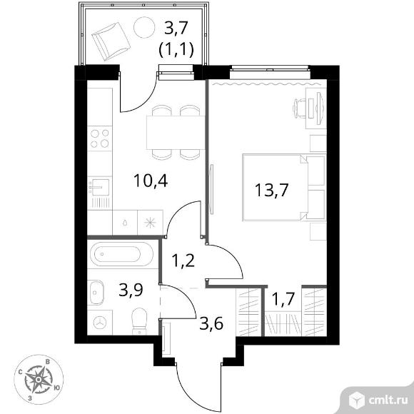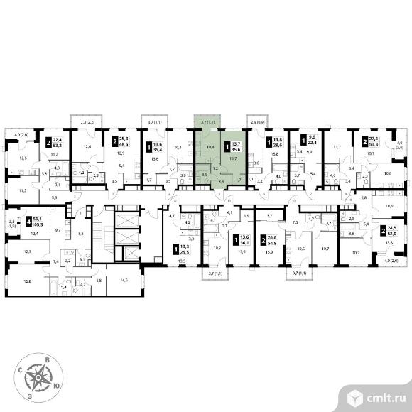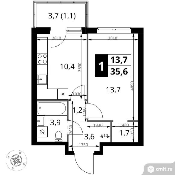 1-комнатная квартира 35,6 кв.м