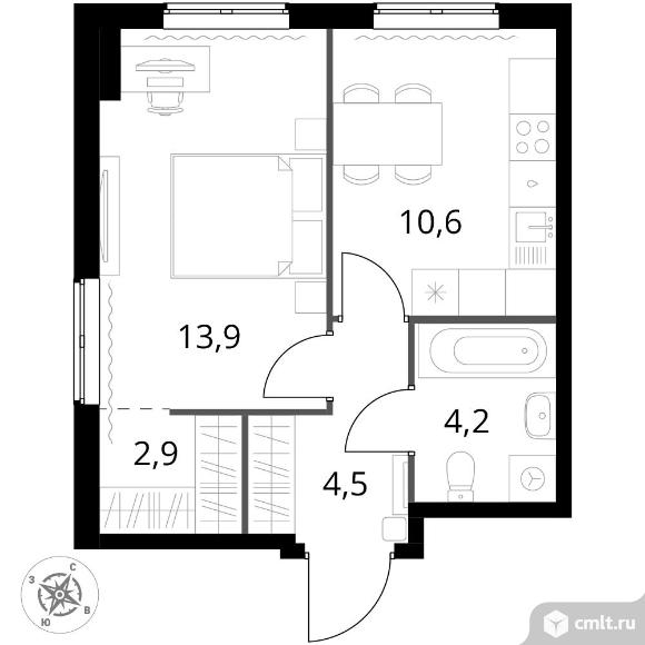 1-комнатная квартира 36,1 кв.м
