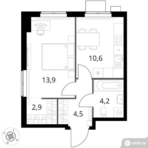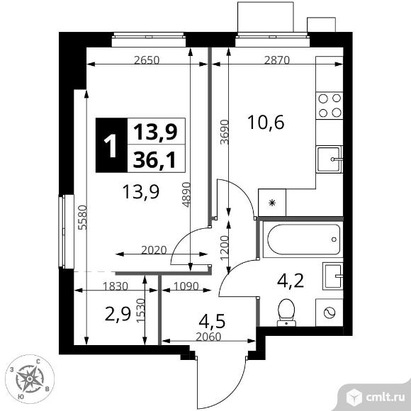 1-комнатная квартира 36,1 кв.м