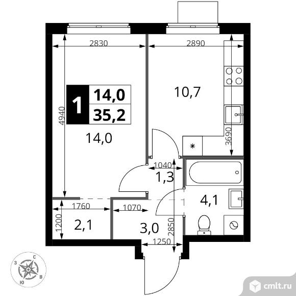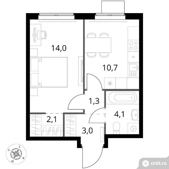1-комнатная квартира 35,2 кв.м