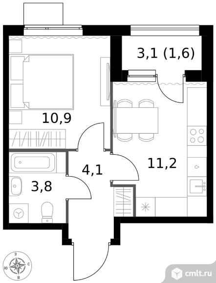 1-комнатная квартира 31,6 кв.м