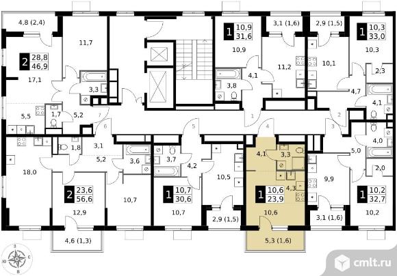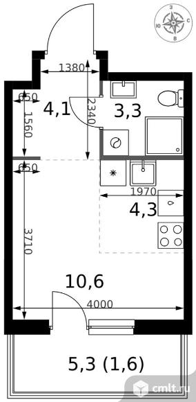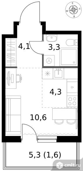 1-комнатная квартира 23,9 кв.м