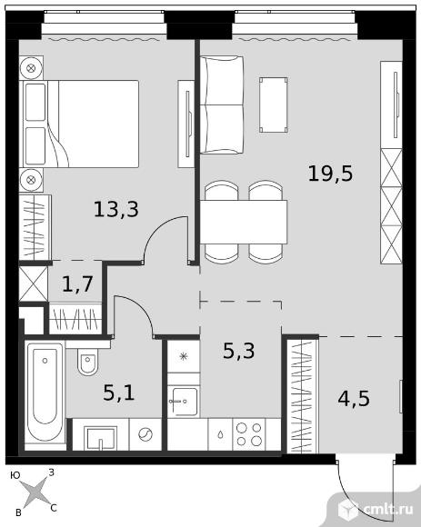 2-комнатная квартира 51,5 кв.м