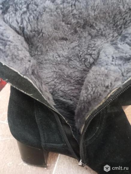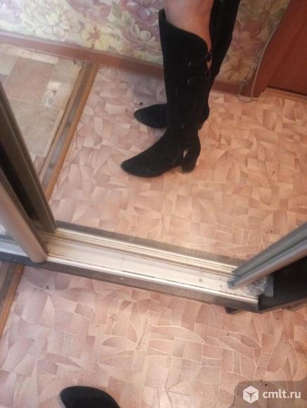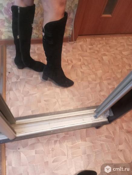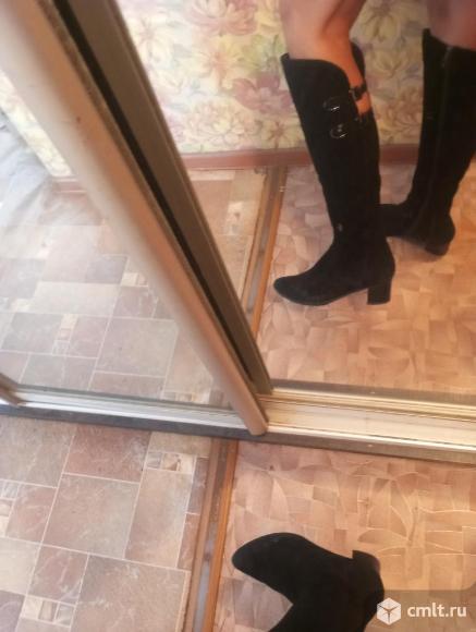 Чёрный цвет делает их универсальными для любого образа. Материал верха — замша, внутри натуральный мех. Легкие и теплые!! Сапоги в хорошем состоянии 28.01.2026 13:17
