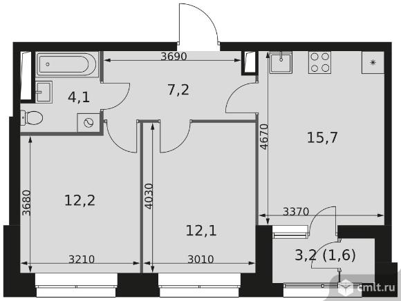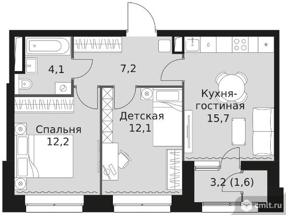 2-комнатная квартира 52,9 кв.м