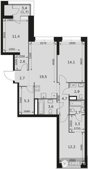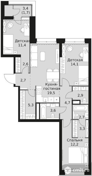 3-комнатная квартира 86,7 кв.м