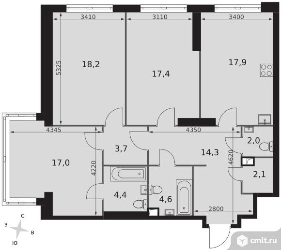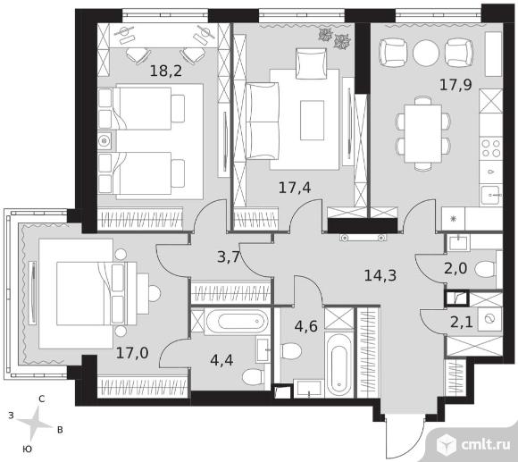 3-комнатная квартира 101,6 кв.м
