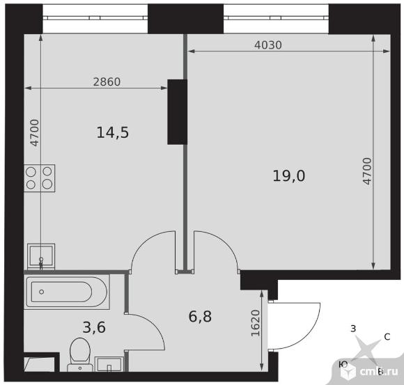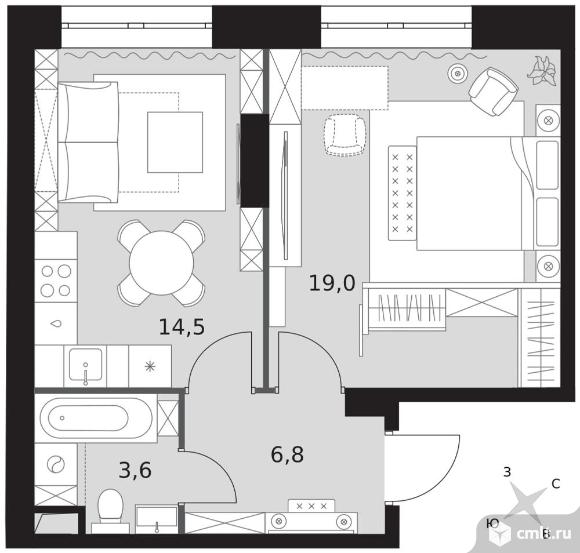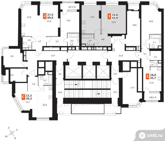 1-комнатная квартира 43,9 кв.м