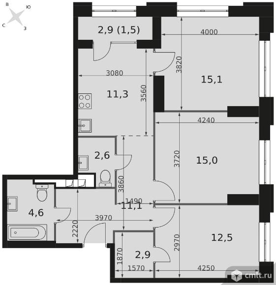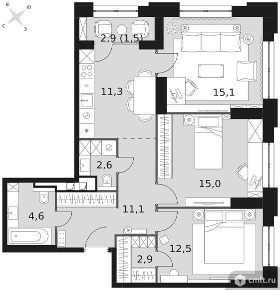 3-комнатная квартира 76,6 кв.м