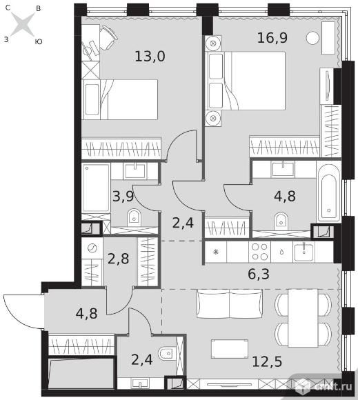 2-комнатная квартира 69,8 кв.м