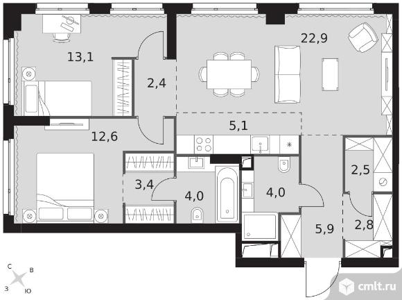 3-комнатная квартира 78,7 кв.м